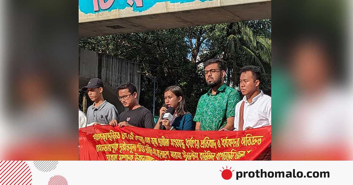 খাগড়াছড়িতে অষ্টম শ্রেণিপড়ুয়া এক জুম্ম ছাত্রীকে দলবদ্ধ ধর্ষণের প্রতিবাদ এবং ধর্ষকদের দ্রুত গ্রেপ্তার ও দৃষ্টান্তমূলক শাস্তির দাবিতে ঢাকা বিশ্ববিদ্যালয় (ঢাবি) বিক্ষোভ ও প্রতিবাদ সমাবেশ হয়েছে। আজ শুক্রবার বিকেল চারটায় ‘আদিবাসী ছাত্র জনতার’ ব্যানারে বিশ্ববিদ্যালয়ের রাজু ভাস্কর্য এলাকায় এই বিক্ষোভ সমাবেশ অনুষ্ঠিত হয়।