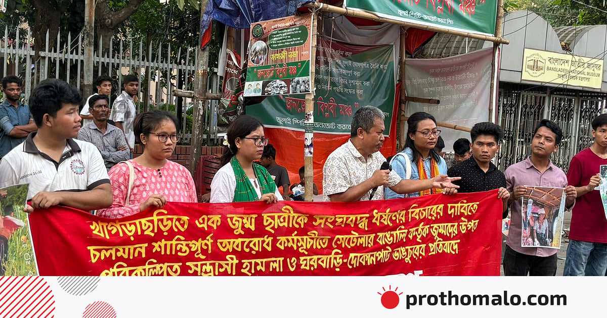 আজ রোববার বিকেলে শাহবাগের জাতীয় জাদুঘরের সামনে আয়োজিত বিক্ষোভ সমাবেশ থেকে এই দাবি জানানো হয়। ‘আদিবাসী ছাত্র-জনতা’র ব্যানারে এই বিক্ষোভ সমাবেশের আয়োজন করা হয়। এতে সভাপতিত্ব করেন ‘আদিবাসী ছাত্র সংগ্রাম পরিষদ’–এর সভাপতি অনন্ত তঞ্চঙ্গ্যা।