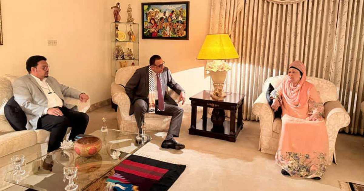 ঢাকায় নিযুক্ত ফিলিস্তিন রাষ্ট্রদূত ইউসুফ এস ওয়াই রামাদান বিএনপি চেয়ারপারসন ও সাবেক প্রধানমন্ত্রী বেগম খালেদা জিয়ার সঙ্গে সৌজন্য সাক্ষাৎ করেছেন।