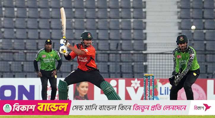 লড়তে থাকা মিথুন অবশ্য পঞ্চাশের দেখা পাননি। ৩২ বলে ৪৪ রান করে সাজঘরে ফেরেন তিনি। শেষদিতে ১৩ বলে ২ চার ও ২ ছক্কায় ২৪ রানের ক্যামিও ইনিংস খেলেন মৃত্যুঞ্জয়। শেষদিকে ৭ বলে অপরাজিত ১১ রান করেন নাহিদুল।