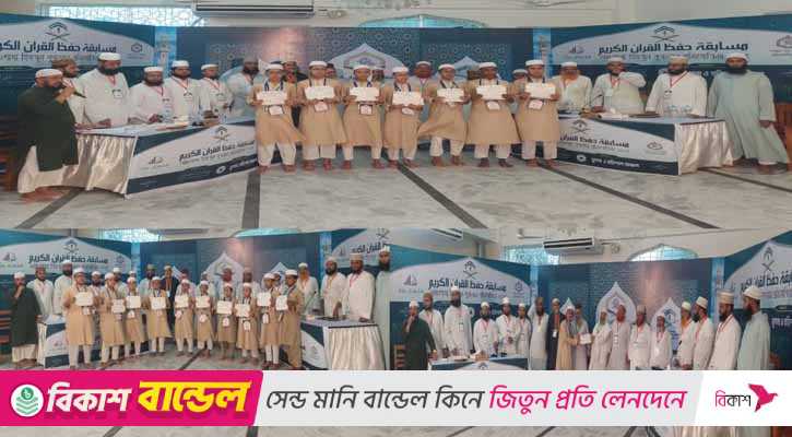 আন্তঃশাখা হিফযুল কুরআন প্রতিযোগিতা শেষে বিজয়ীদের মাঝে নগদ অর্থ ও সনদপত্র বিতরণ করা হয়।