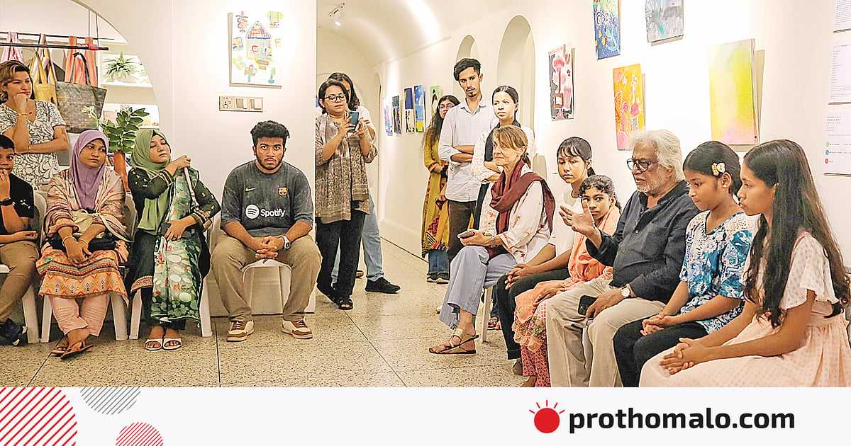 প্রদর্শনীর উদ্বোধনী অনুষ্ঠানে এসেছিল কড়াইলের ময়না আক্তার। সে দ্বিতীয় শ্রেণিতে পড়ে সানরাইজ মডেল স্কুলে। বাবা রিকশা চালান, মা গৃহকর্মী। তাদের গ্রামের বাড়ি ভোলায়। সে এঁকেছে গ্রামের দৃশ্য। সবুজ গাছপালা ভরা গ্রামের মধ্য দিয়ে বয়ে গেছে নদী। আকাশে সাদা মেঘ। বড় হয়ে শিল্পী হওয়ার ইচ্ছা তার। মহাখালী মডেল স্কুলের নবম শ্রেণির শিক্ষার্থী হনুফা আক্তার এঁকেছে ফুলের বাগান। তার ইচ্ছা ফ্যাশন ডিজাইনার হওয়ার। হনুফা বলছিল, ‘আগে খাতার পাতায় ছবি এঁকে ঘরের দেয়ালে লাগিয়ে রাখতাম। এখন আমার ছবি অনেক মানুষ দেখতে এসেছে। এতে খুব ভালো লাগছে।’ অনেকে এসেছিল ছবির এই প্রদর্শনীতে।