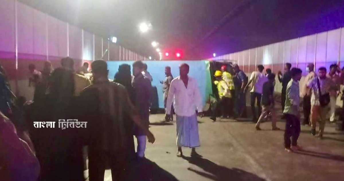 কর্ণফুলী টানেলের সহকারী প্রকৌশলী (টোল ও ট্র্যাফিক) গোলাম সামদানী হিমেল বাংলা ট্রিবিউনকে বলেন, ‘পতেঙ্গা থেকে আনোয়ারায় যাওয়ার সময় বাসটি নিয়ন্ত্রণ হারিয়ে উল্টে যায়। এতে বাসা থাকা ১০ যাত্রী আহত হন। পরে টানেলের নিরাপত্তায় নিয়োজিত সদস্যরা গাড়ি ও অ্যাম্বুলেন্সে করে আহতদের হাসপাতালে পাঠান। তবে কারও বড় ধরনের ক্ষতি হয়নি। অতিরিক্ত গতিতে চলার কারণে বাসটি নিয়ন্ত্রণ হারিয়ে উল্টে যায়। নিরাপত্তার স্বার্থে বাসটি জব্দ করে থানায় দেওয়া হয়েছে। টানেলের কোনও ক্ষতি হয়নি।’