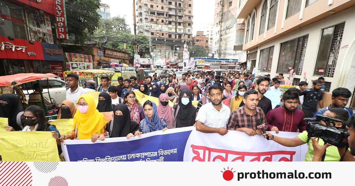 আরেক সহপাঠী মুনিয়া আফরোজ বলেন, ‘আমাদের বান্ধবীকে ধর্ষণের পর হত্যা করা হয়েছে, যা লাশ উদ্ধারের সাত দিন পর জানা গেল। পুলিশ তদন্তে অবহেলা করেছে। আমাদের দাবি, এক সপ্তাহের মধ্যে এই জোড়া খুনের পেছনে আরও বড় কোনো শক্তি আছে কি না, তা সুষ্ঠু তদন্ত করে উন্মোচন করতে হবে। মামলা বিশেষ আদালতে হস্তান্তর করতে হবে। ধর্ষকের সুষ্ঠু বিচার ও ফাঁসি নিশ্চিত না হওয়া পর্যন্ত আমরা রাজপথ ছাড়ব না।’