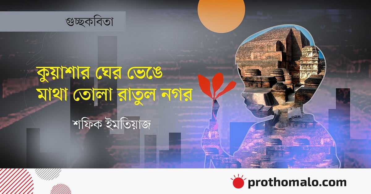 একদিন মানচিত্রে কোথাও ছিল না এই নগরের দাগছিল না হিরণদ্যুতি-প্রাসাদের গগনছোঁয়া গরিমানিতল কুয়াশা; গভীর আড়ালে তার ছিল শুধু ছিন্নঘুমজল স্থল অন্তরিক্ষে ছিল কিছু জোনাকি-সংকেতকোনো এক মানবসংগমে হঠাৎ জেগে ওঠার!মোহনায় মিলনগামী সে অনেক বিরহজল প্রকাশে ইচ্ছুক আকাশে আকাশে দগ্ধতারা-নীলছিন্নঘুমে ডুবে থাকা অন্ধ স্বপ্নরেশপৃথিবীর বুকে লুপ্ত কোটি ফসলের চোয়ানো নির্যাস থেকেইট কাঠ বালি জল সিমেন্ট ও পাথরের মিলিত উল্লাসেএকদিন কুয়াশার ঘের ভেঙে মাথা তোলা রাতুল নগর!কতবার কত মেঘ জমতে জমতে ভেঙে গেছে আকাশেইকতবার গন্ধরাশি সেতু ভেঙে পড়ে গেছে আগুন নদীতেমেলেনি ফুলের সঙ্গআজ নগরের দেহ ধুয়ে বিমোহিত বৃষ্টিজলঅযুত সৌগন্ধে হেসে ওঠা অগণিত পুষ্পোদ্যান!আমি এই নগরের অনিন্দ্য রূপে অবাক-চোখ শিশুবাতাসের সঙ্গে ভেসে ভেসে দেখি যাবতীয় কুশল নির্মাণনগরের হৃৎপিণ্ডে কান পাতি—শুনি হরপ্পা নালন্দা তক্ষশীলারোম স্পার্টা এথেন্স অ্যাশিরিয়ান; হাজার বিলুপ্ত নগরের শ্বাস!