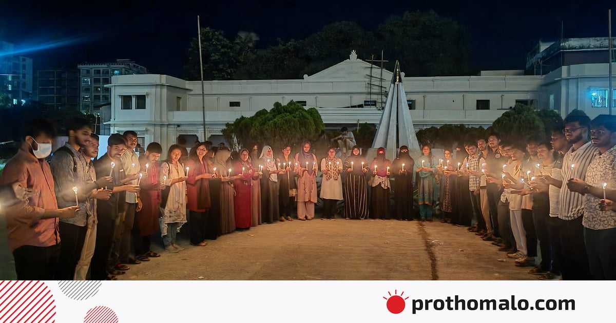কর্মসূচিতে অংশ নিয়ে হত্যাকাণ্ডের শিকার শিক্ষার্থীর সহপাঠী নূর মোহাম্মদ সোহান বলেন, ‘আজ হত্যাকাণ্ডের ১৪ দিন অতিবাহিত হলেও আমরা ফরেনসিক রিপোর্ট পাইনি। দীর্ঘ সময় পেরিয়ে গেলেও মূল ঘটনা কীভাবে ঘটেছে, সে বিষয়ে আমরা এখনো কিছুই জানতে পারিনি। এই বিলম্ব সহপাঠীদের মানসিকভাবে আরও ভেঙে দিচ্ছে। তাই আমরা আজ মোমবাতি প্রজ্বালন কর্মসূচির মাধ্যমে দাঁড়িয়েছি। আমাদের একটাই দাবি, দ্রুততার সঙ্গে ফরেনসিক রিপোর্ট প্রকাশ করা হোক। প্রকৃত ঘটনা প্রকাশ্যে আনা হোক। অপরাধীর দৃষ্টান্তমূলক শাস্তি নিশ্চিত করা হোক। তা না হলে শিক্ষার্থীরা কঠোর কর্মসূচি ঘোষণা করতে বাধ্য হবে।’