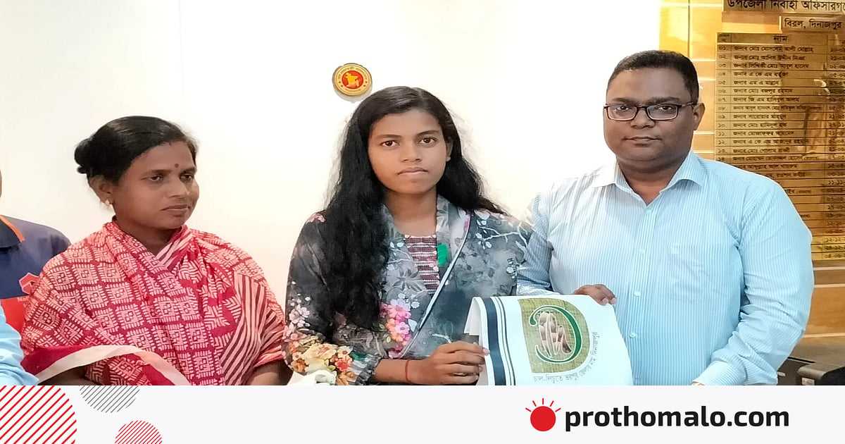 আজ বুধবার সকালে বিরল উপজেলা নির্বাহী কর্মকর্তার কার্যালয়ে উপহার হিসেবে প্রথম বর্ষের প্রয়োজনীয় বইপুস্তকসহ বিভিন্ন শিক্ষা উপকরণ গীতার হাতে তুলে দিয়েছেন অতিরিক্ত জেলা প্রশাসক (শিক্ষা ও আইসিটি) এস এম হাবিবুল হাসান। এ সময় উপস্থিত ছিলেন বিরল উপজেলা সহকারী কমিশনার (ভূমি) ইশতিয়াক আহমেদ, গীতা কড়ার বাবা কৃষ্ণ কড়া, মা বাবলী কড়া প্রমুখ।