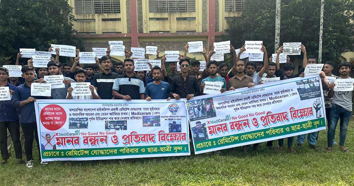 মালয়েশিয়ায় দুটি কোম্পানির নির্যাতন এবং জোরপূর্বক দেশে ফেরত পাঠানোর প্রতিবাদে বাংলাদেশি শ্রমিকদের ন্যায়বিচার ও ক্ষতিপূরণের দাবিতে সোমবার (১০ নভেম্বর) প্রবাসীকল্যাণ ও বৈদেশিক কর্মসংস্থান মন্ত্রণালয়ের সামনে মানববন্ধন করা হয়েছে। মানববন্ধনে মালয়েশিয়ার দুইটি কোম্পানি মডিকেরাম এবং কাওয়াগুচি ম্যানুফেকচারিয়ের শোষণের শিকার ৪৩১ জন বাংলাদেশি শ্রমিকের জন্য দ্রুত সহায়তা দাবি এবং মালয়েশিয়ায় প্রবাসী শ্রমিকদের ওপর ব্যাপক নির্যাতনের বিষয়টি তুলে ধরা হয়।