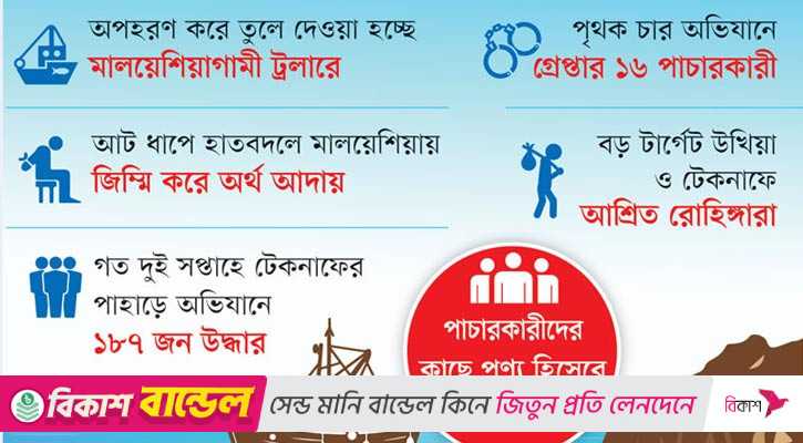প্রতিবছর শীত মৌসুমে কক্সবাজারের উখিয়া, টেকনাফ ও রোহিঙ্গা ক্যাম্পে মানবপাচারকারীদের তৎপরতা বেড়ে যায়। এ বছর শীত শুরুর আগেই উপকূলে সক্রিয় হয়েছে মানবপাচারকারী দালালরা। নারী-শিশুসহ স্থানীয় লোকজনকে পাচারের জন্য তুলে নিয়ে জড়ো করা হচ্ছে টেকনাফের বাহারছড়া ইউনিয়নের বিভিন্ন পাহাড়ে, পাচারকারীদের গোপন আস্তানায়। সেখান থেকে সুযোগ বুঝে তুলে দেওয়া হচ্ছে ট্রলারে।