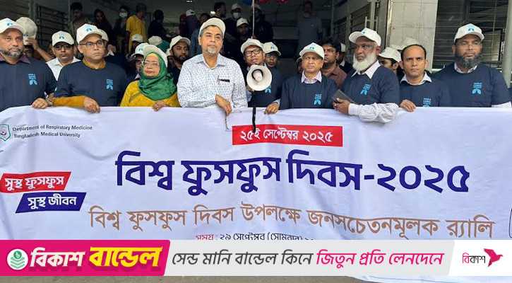 সোমবার (২৯ সেপ্টেম্বর) দিনব্যাপী বাংলাদেশ মেডিক্যাল বিশ্ববিদ্যালয়ের বক্ষব্যাধি বিভাগ ও চেস্ট এন্ড হার্ট অ্যাসোসিয়েশন অব বাংলাদেশবিশ্ব যৌথভাবে ফুসফুস দিবস-২০২৫ উপলক্ষ্যে বর্ণাঢ্য শোভাযাত্রা ও বৈজ্ঞানিক সেমিনারের আযোজন করে।