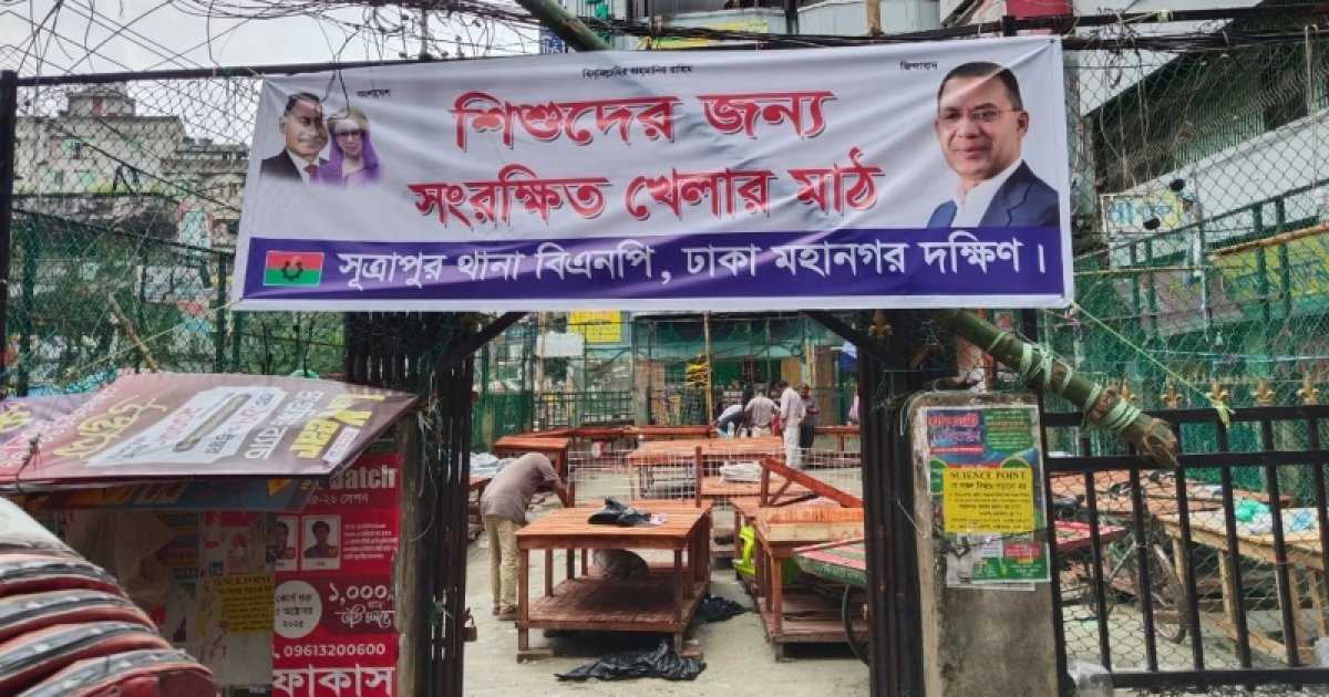 সোমবার (২২ সেপ্টেম্বর) দুপুরে সূত্রাপুর থানা বিএনপি ও স্থানীয় ওয়ার্ড পর্যায়ের নেতাকর্মীরা মাঠটি উচ্ছেদ করেন। মাঠের ফটকে ‘খেলাধুলার জন্য সংরক্ষিত’ ব্যানারও টানিয়ে দেন বিএনপি নেতারা।