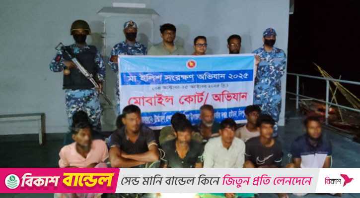 চাঁদপুর: চাঁদপুরের হাইমচর মেঘনা নদীর অভয়াশ্রম এলাকায় অভিযান চালিয়ে ১১ জেলেকে আটক করেছে উপজেলা টাস্কফোর্স। এর মধ্যে ৮ জনকে কারাদণ্ড দিয়েছেন ভ্রাম্যমাণ আদালত।