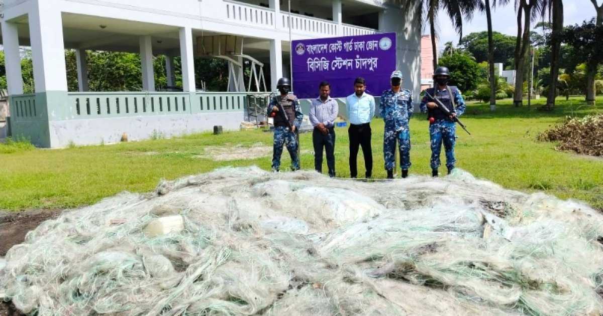 এরই ধারাবাহিকতায় বুধবার সকাল ৮টায় কোস্টগার্ড স্টেশন চাঁদপুর কর্তৃক চাঁদপুর মেঘনা নদীর মোহনা ও তৎসংলগ্ন এলাকায় একটি অভিযান পরিচালনা করা হয়। অভিযান চলাকালীন এলাকা হতে প্রায় ১০ লাখ ৫০ হাজার টাকা মূল্যের ৩০ হাজার মিটার অবৈধ কারেন্ট জাল, ২০ হাজার টাকা মূল্যের ২০ কেজি ইলিশ মাছ ও ২টি ইঞ্জিন চালিত কাঠের বোটসহ ১৭ জেলেকে আটক করা হয়। আটক জেলেদের মধ্যে একজনের বয়স ১৮ বছরের কম হওয়ায় মুচলেকা নিয়ে অভিভাবকের কাছে হস্তান্তর করা হয়।