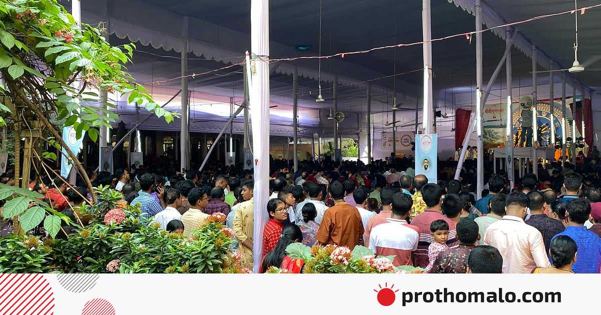 ভক্তদের স্বাগত জানাতে সকাল থেকে প্রস্তুত ছিল মন্দির প্রাঙ্গণ। মন্দির কর্তৃপক্ষ, স্বেচ্ছাসেবী আর পুরোহিতেরা শৃঙ্খলা রক্ষা ও পূজার আচারে ব্যস্ত হয়ে পড়েন। নির্ধারিত সময় বেলা ১১টায় পূজা শুরু হয়।