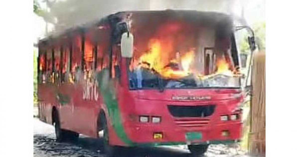 চালকের ধারণা, বাসের পেছনের ব্যাটারির সংযোগ থেকে এ আগুনের সূত্রপাত হয়।
