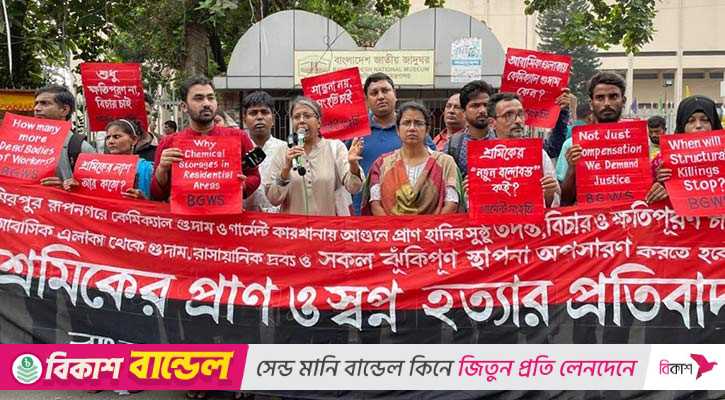 বৃহস্পতিবার (১৬ অক্টোবর) রাজধানীর শাহবাগে ‘শ্রমিকের প্রাণ ও স্বপ্ন হত্যার প্রতিবাদে’ বাংলাদেশ গার্মেন্ট শ্রমিক সংহতির উদ্যোগে আয়োজিত বিক্ষোভ সমাবেশে সভাপতির বক্তব্যে এসব কথা বলেন তিনি।
