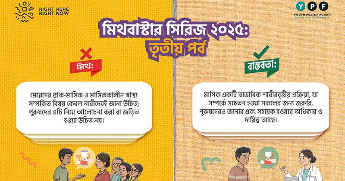 ইউথ পলিসি ফোরাম ও ‘অধিকার এখানে, এখনই’ প্রকল্পের যৌথ প্রয়াসের মিথবাস্টার সিরিজের এটি তৃতীয় পর্ব। এই প্রকল্প নিয়ে আরও জানতে ভিজিট করুন-https://ypfbd.org/ypfrhrn/