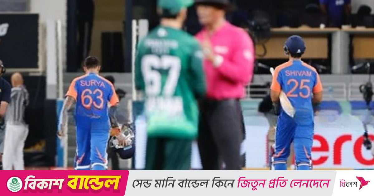 আগা সালমান-শাহিন আফ্রিদিরা হয়তো সেটা ভেবেই মাঠে দাঁড়িয়ে ছিলেন। অপেক্ষায় ছিলেন সূর্যকুমার যাদব ও শিবম দুবে সৌজন্যতার খাতিরে হলেও তাঁদের সঙ্গে হাত মেলাবেন। এরপর ডাগআউটে থাকা বাকিরাও করমর্দন করবেন।