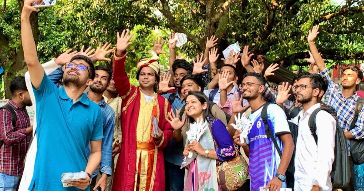ছাত্রদল মনোনীত ‘ঐক্যবদ্ধ নতুন প্রজন্ম’ প্যানেলের সংস্কৃতিবিষয়ক সম্পাদক পদপ্রার্থী আব্দুল্লাহ আল কাফী সোমবার (৬ অক্টোবর) নবাব সিরাজউদ্দৌলার পোশাকে ক্যাম্পাসের বিভিন্ন পয়েন্টে প্রচার চালান। তার এই ব্যতিক্রমী সাজ শিক্ষার্থীদের মাঝে ব্যাপক আলোচনার জন্ম দিয়েছে।