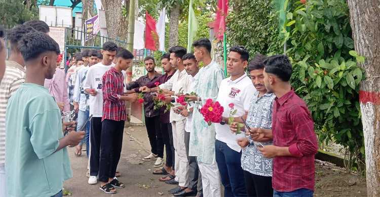 সোমবার (১৫ সেপ্টেম্বর) সকালে কলেজের মূল ফটকে নবীন শিক্ষার্থীদের হাতে ফুল, শুভেচ্ছা বার্তা, কলম ও চকলেট উপহার দিয়ে বরণ করে নেন সংগঠনের নেতাকর্মীরা।
