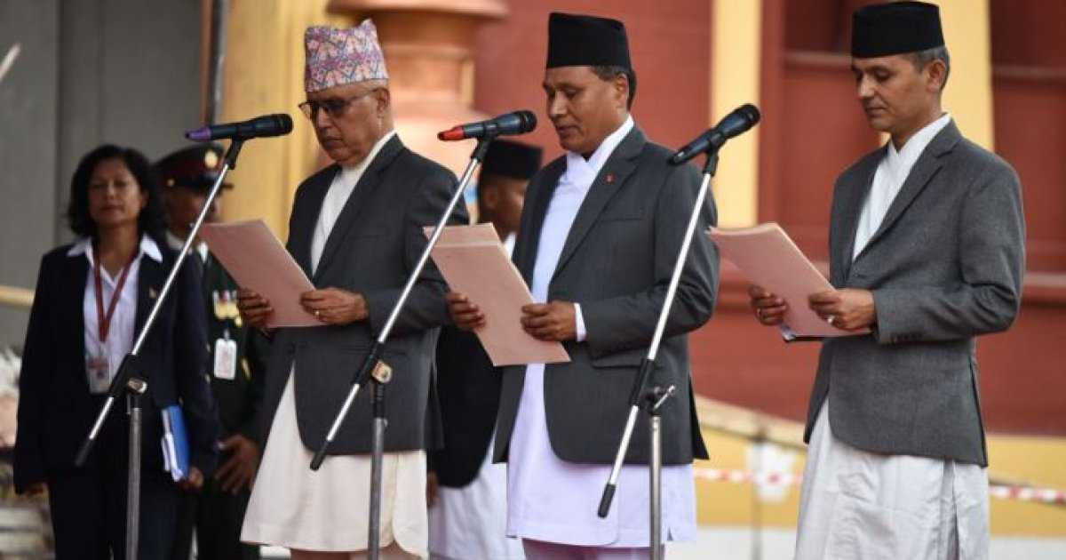 সাবেক অর্থসচিব রামেশ্বর খনাল অর্থমন্ত্রী, নেপাল বিদ্যুৎ কর্তৃপক্ষের সাবেক নির্বাহী পরিচালক কুলমান ঘিসিং জ্বালানি, পানি সম্পদ ও সেচমন্ত্রী এবং খ্যাতিমান আইনজীবী ওম প্রকাশ আর্যাল স্বরাষ্ট্রমন্ত্রী হিসেবে শপথ নেন।