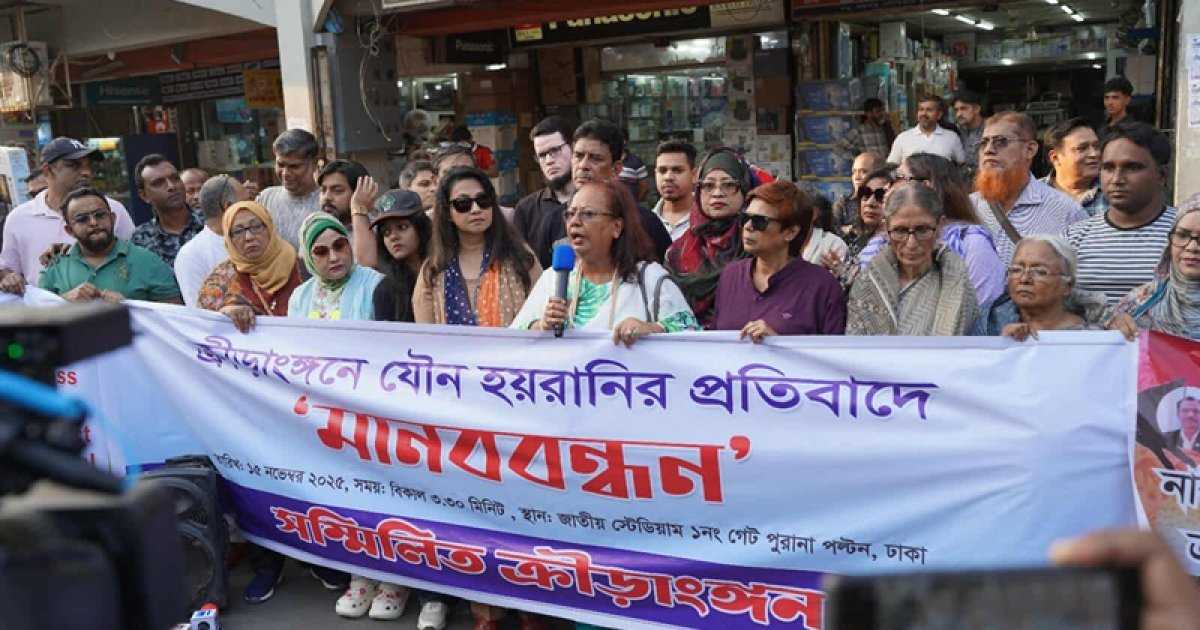 মানববন্ধনে জাতীয় ক্রীড়া পুরস্কারপ্রাপ্ত ক্রীড়াবিদ ও সংগঠক কামরুন নাহার ডানা বলেন, ‘বাংলাদেশের ক্রীড়াঙ্গনে সর্বক্ষেত্রে নারীরা সাফল্য আনছেন। এরপরও ক্রীড়াঙ্গন নারীদের জন্য নিরাপদ হবে না কেন? যারা নিপীড়ক রয়েছে তাদের দৃষ্টান্তমূলক শাস্তি চাই, যেন কেউ ভবিষ্যতে এ রকম কাজ করার সাহস না পায়। নিপীড়নের শাস্তি না হলে সামনের দিকে নারীরা আর ক্রীড়াঙ্গনে আসবেন না।’