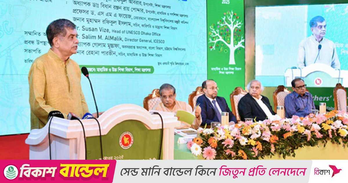 রবিবার (৫ অক্টোবর) ‘বিশ্ব শিক্ষক দিবস’ উপলক্ষে ওসমানী স্মৃতি মিলনায়তনে আয়োজিত এক অনুষ্ঠানে প্রধান অতিথি বক্তব্যে তিনি এসব কথা বলেন। অনুষ্ঠানে ২০২৫ সালের জন্য মনোনীত ১২ জন গুণী শিক্ষককে সম্মাননা দেওয়া হয়। এবারের বিশ্ব শিক্ষক দিবসের প্রতিপাদ্য ‘শিক্ষকতা পেশা: মিলিত প্রচেষ্টার দীপ্তি’।