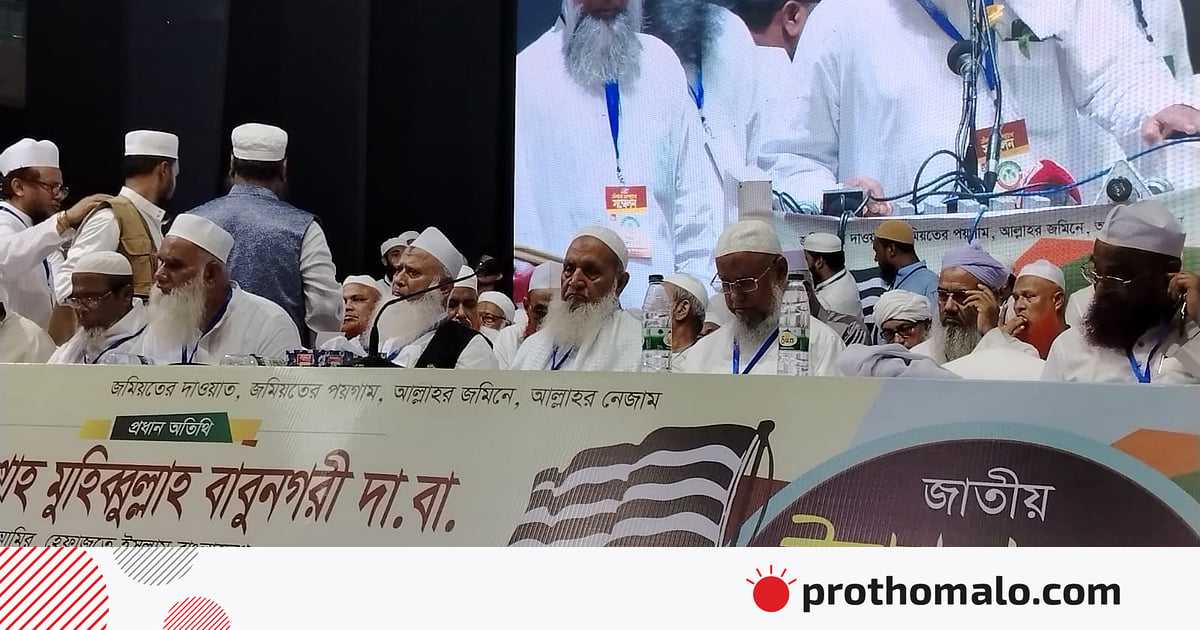আজ বৃহস্পতিবার সকালে রাজধানীর ইঞ্জিনিয়ার্স ইনস্টিটিউশন মিলনায়তনে ‘জাতীয় উলামা মাশায়েখ সম্মেলন ২০২৫’–এ লিখিত বক্তব্যে হেফাজতে ইসলাম বাংলাদেশের আমির শাহ মুহিবুল্লাহ বাবুনগরী এ কথা বলেন। জমিয়তে উলামায়ে ইসলাম বাংলাদেশের উদ্যোগে এই সম্মেলন অনুষ্ঠিত হয়।
