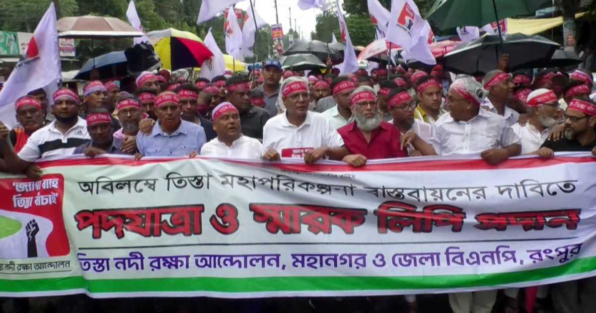 এর আগে বৃষ্টির মধ্যে তিস্তা নদীর তীরবর্তী এলাকার মানুষসহ শত শত মানুষ রংপুর নগরীর কাছারী বাজার এলাকায় অবস্থিত শিক্ষা অফিস চত্বরে সমবেত হন। পরে মিছিল নিয়ে রংপুরের ডিসি অফিস ঘেরাও করে বিক্ষোভ করেন।