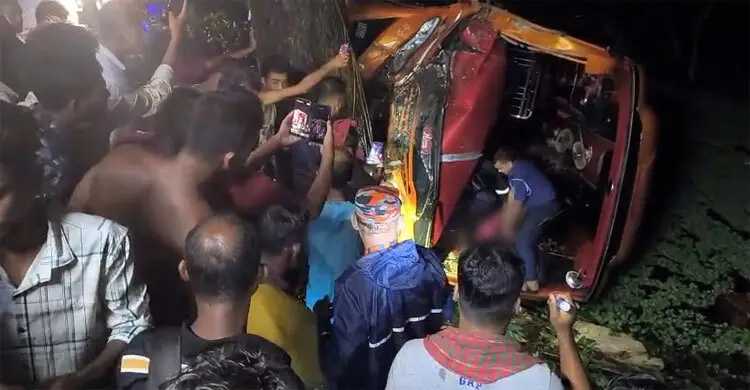পুলিশ ও স্থানীয় সূত্র জানায়, কুয়াকাটা থেকে ঢাকার দিকে যাচ্ছিল চন্দ্রা পরিবহনের একটি যাত্রীবাহী বাস। পথে ঢাকা-বরিশাল মহাসড়কের রাজৈর বাসস্ট্যান্ড পার হয়ে সেটি নিয়ন্ত্রণ হারায়। এসময় বাসে থাকা ৩১ যাত্রীসহ মহাসড়কের পাশে খাদে পড়ে যায়। খবর পেয়ে ঘটনাস্থলে আসে হাইওয়ে পুলিশ ও ফায়ার সার্ভিসের কর্মীরা। এসময় বাসের নিচে চাপা পড়ে নিহত অবস্থায় নিলুফা ইয়াসমিন নিলা নামে এক নারীর মরদেহ উদ্ধার করা হয়। এ ঘটনায় আহত হয়েছেন ৩০ জন যাত্রী। আহতদের উদ্ধার করে রাজৈর উপজেলা স্বাস্থ্য কমপ্লেক্সে পাঠানো হয়।
