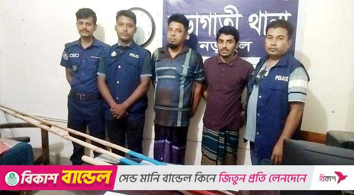 নড়াইল: ধারালো অস্ত্র ও সড়কিসহ নড়াইলের নড়াগাতী থানার জয়নগর ইউনিয়নের রামপুরা গ্রাম থেকে বাবা ও ছেলেকে গ্রেপ্তার করেছে পুলিশ।