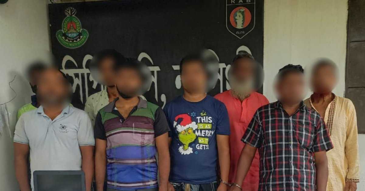 গ্রেফতারকৃতরা হলেন— মো. শফিক মিয়া (৩২), মো. মোস্তফা (৩৮), জাহিদ হাসান (১৭), আয়নাল হক (৩৮), মহিউদ্দিন হৃদয় (২২), মো. বাচ্চু মিয়া (৬২), কালু মিয়া (৬৯) ও মো. বাছেদ (৪০)।