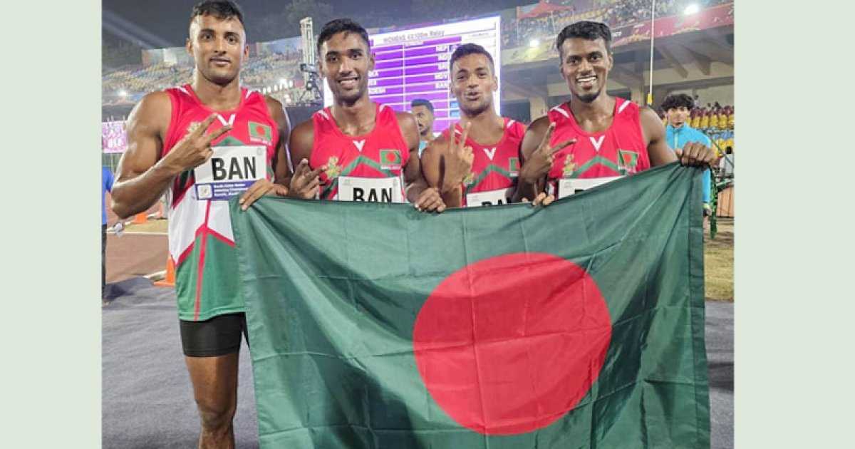 এই ইভেন্টে শ্রীলঙ্কা ৩৯.৯৯ সেকেন্ড সময় নিয়ে স্বর্ণপদক জিতেছে। এরপর ভারত ৪০.৬৫ সেকেন্ড সময় নিয়ে রৌপ্য পদক নিশ্চিত করেছে। বাংলাদেশ ৪০.৯৪ সেকেন্ড সময় নিয়ে ব্রোঞ্জ জিতেছে। চতুর্থ মালদ্বীপ এবং পঞ্চম হয়েছে নেপাল।