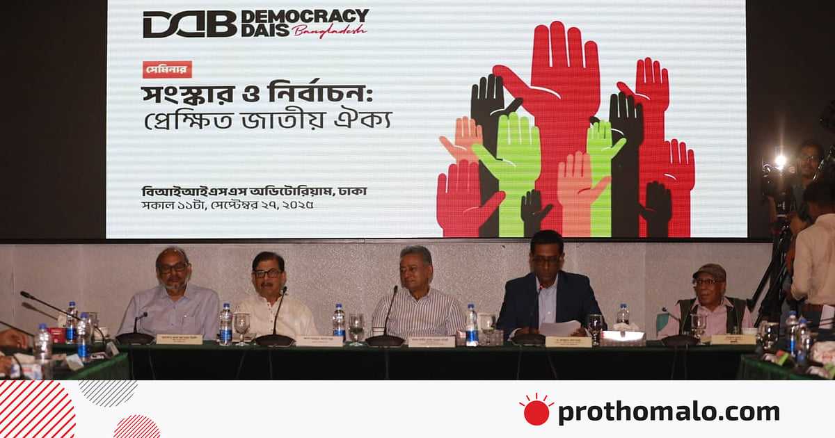 আজ শনিবার দুপুরে রাজধানীর রমনায় বাংলাদেশ ইনস্টিটিউট অব ইন্টারন্যাশনাল অ্যান্ড স্ট্র্যাটেজিক স্টাডিজ (বিআইআইএসএস) মিলনায়তনে এক সেমিনারে অংশ নিয়ে মাহমুদুর রহমান এ কথা বলেন। ‘সংস্কার ও নির্বাচন: প্রেক্ষিত জাতীয় ঐক্য’ শিরোনামে এ সেমিনারের আয়োজন করে ডেমোক্রেসি ডায়াস বাংলাদেশ নামের একটি প্ল্যাটফর্ম।