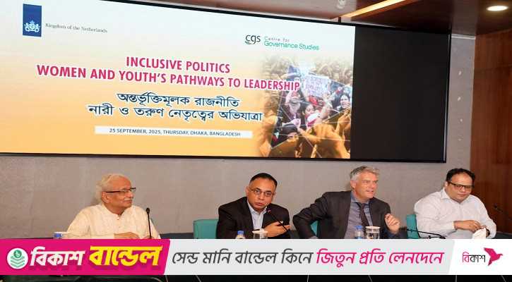 ঢাকা: সেন্টার ফর গভর্ন্যান্স স্টাডিজ (সিজিএস) নেদারল্যান্ডস রাজ্যের দূতাবাসের সহযোগিতায় বৃহস্পতিবার (২৫ সেপ্টেম্বর) বাংলাদেশ ইনস্টিটিউট অব ইন্টারন্যাশনাল অ্যান্ড স্ট্র্যাটেজিক স্টাডিজ (বিআইআইএসএস) অডিটোরিয়ামে “অন্তর্ভূক্তিমূলক রাজনীতি: নারী ও তরুণ নেতৃত্বের অভিযাত্রা” শীর্ষক গোলটেবিল সংলাপের আয়োজন করে।