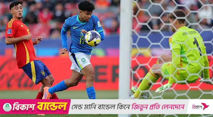চিলিতে অনুষ্ঠিত অনূর্ধ্ব-২০ বিশ্বকাপে গ্রুপপর্বের সবচেয়ে বড় চমক এনে দিয়েছে স্পেন। শনিবার গ্রুপ ‘সি’-এর নির্ধারণী ম্যাচে স্পেনের কাছে ১-০ গোলে হেরে বিদায় নিয়েছে ব্রাজিল অনূর্ধ্ব-২০ দল।