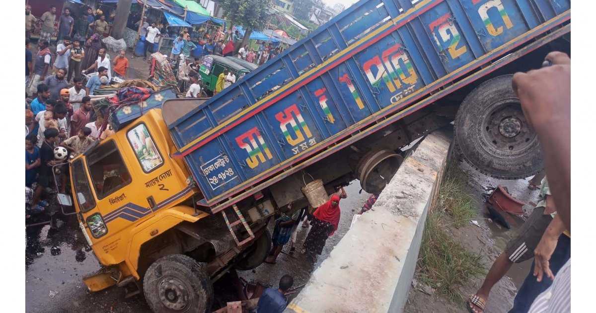 ঢাকা-নারায়ণগঞ্জ লিংক রোডে একটি ট্রাক নিয়ন্ত্রণ হারিয়ে ওভারপাসের রেলিং ভেঙে নিচে পড়েছে। এ ঘটনায় ট্রাকের নিচে চাপা পড়ে মোহর উদ্দিন (৩৫) নামে একজন রিকশাচালক নিহত হয়েছেন। সোমবার (২৯ সেপ্টেম্বর) দুপুরে ভূঁইঘর এলাকায় এ ঘটনা ঘটে।