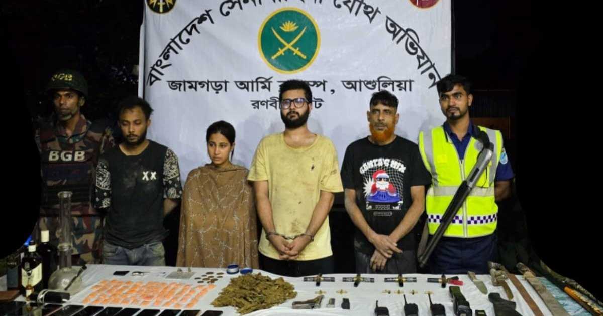 ঢাকার সাভারের আশুলিয়ায় দুটি যৌথ অভিযান চালিয়ে দেশি-বিদেশি অস্ত্র এবং বিপুল পরিমাণ মাদকদ্রব্যসহ সাত মাদক ব্যবসায়ী ও সন্ত্রাসীকে আটক করেছে সেনাবাহিনী। এ সময় বিদেশি পিস্তল, বিপুল পরিমাণ কার্তুজ, গুলি, ইয়াবা ও গাঁজা পাওয়া যায়। তাদের বিরুদ্ধে সংশ্লিষ্ট ধারায় মামলা দায়েরের পর আদালতে পাঠিয়েছে পুলিশ।