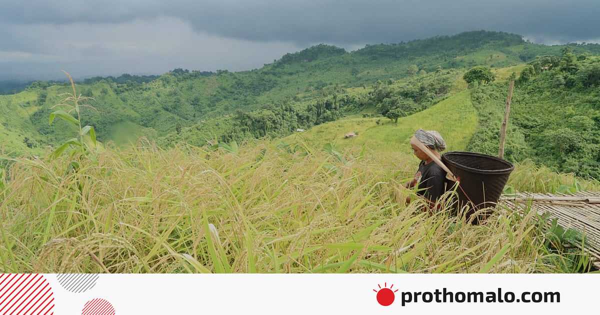 পাহাড়ের আঁকাবাঁকা ঢালে চলছে জুমচাষ। চৈত্র-বৈশাখ মাসে বোনা ধান এখন সোনালি রঙে ভরে দিয়েছে পাহাড়। শুধু ধান নয়, তার সঙ্গে মরিচ, শিম, বরবটি, কলাসহ বিভিন্ন ফসলও হচ্ছে জুম খেতে। কাপ্তাই উপজেলার পাহাড়ি এলাকার জুমচাষ নিয়ে এ ছবির গল্প।