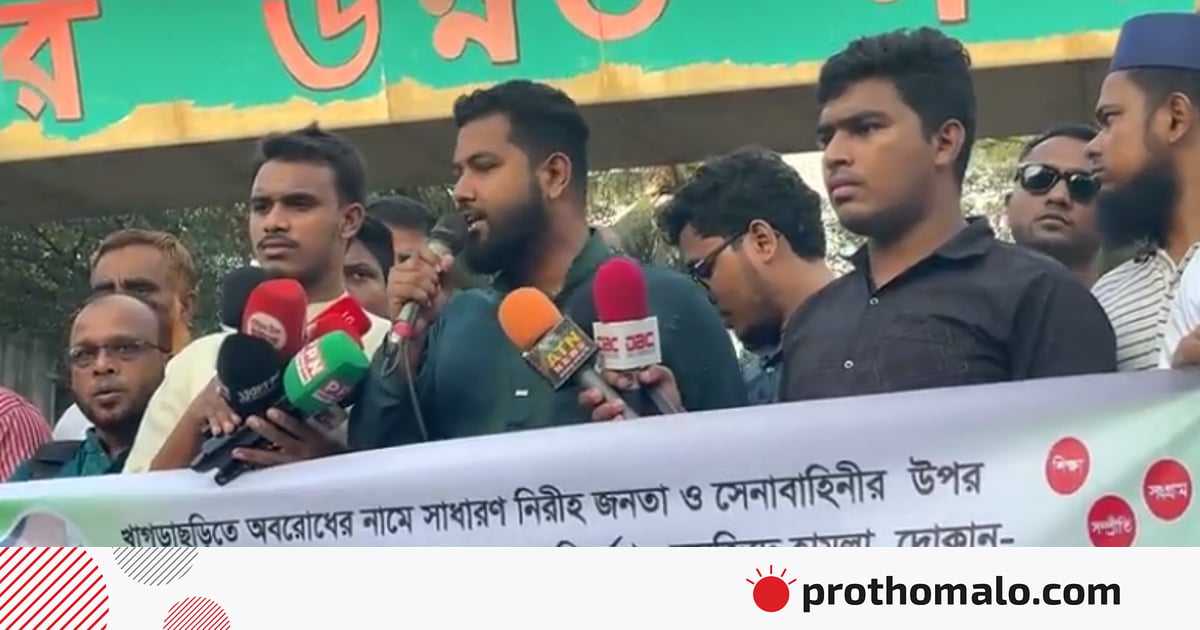 খাগড়াছড়িতে বাঙালিদের ওপর গুলি চালানো, দোকানপাট লুটপাট, মসজিদে হামলা ও সাম্প্রদায়িক দাঙ্গা উসকে দেওয়ার ঘটনায় বিক্ষোভ সমাবেশ করেছে পার্বত্য চট্টগ্রাম ছাত্র পরিষদ (পিসিসিপি)। আজ রোববার বিকেলে ঢাকা বিশ্ববিদ্যালয়ের রাজু ভাস্কর্য চত্বরে এই সমাবেশ অনুষ্ঠিত হয়।