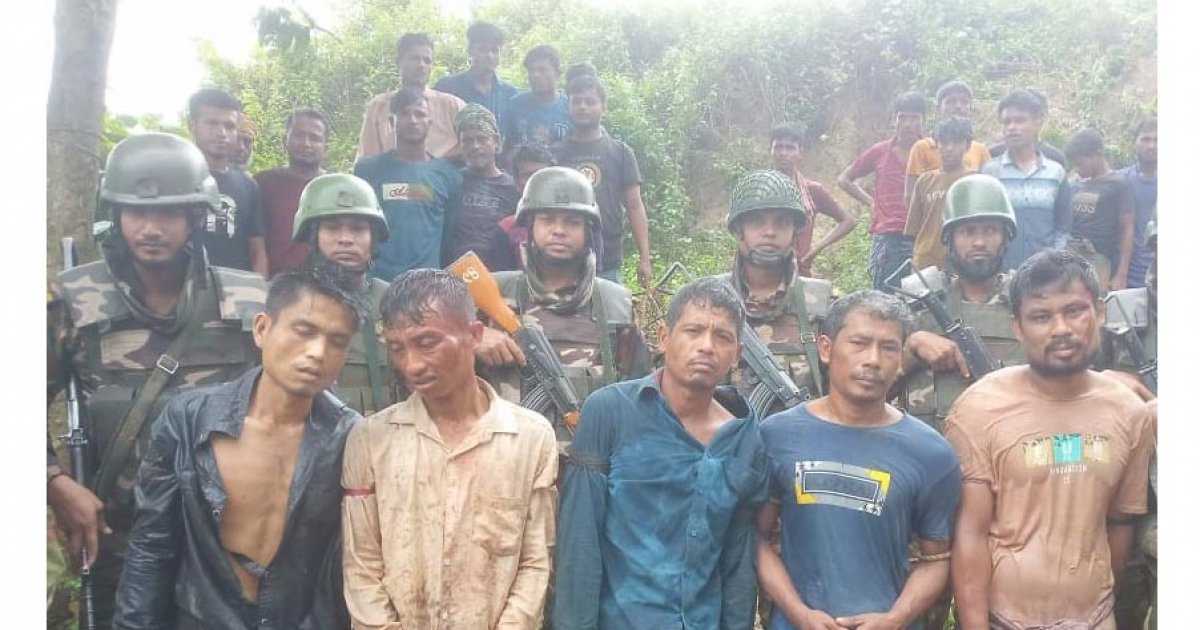 আটককৃতরা হলো– বান্দরবান জেলার ডলুপাড়া এলাকার থৈয় মং মারমার ছেলে মং চালু মারমা (৩৮), সামু মারমার ছেলে মনুচিং মারমা (৪০), মুনিসির ছেলে লুকুম (৩৬), অক্ষয় সিংয়ের ছেলে সুলাই মারমা (৩০), ত্রাপু অয়ের ছেলে চাইসাও (৪০) এবং সৈলক্ষ মারমার ছেলে চাচিংপু মারমা (৩৮)।