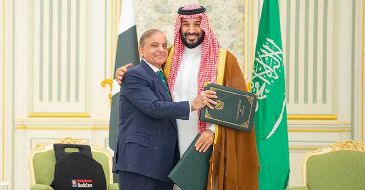 পাকিস্তান-সৌদি আরব ঐতিহাসিক এক প্রতিরক্ষা চুক্তিতে সই করেছে। এখন থেকে যে কারও ওপর হামলা হলেই উভয় দেশ যৌথ পদক্ষেপ নেবে। বুধবার (১৭ সেপ্টেম্বর) পাকিস্তানের প্রধানমন্ত্রী শাহবাজ শরীফ ও সৌদি যুবরাজ মোহাম্মদ বিন সালমান রিয়াদের ইয়ামামা প্যালেসে এই ‘কৌশলগত পারস্পরিক প্রতিরক্ষা চুক্তি’তে সই করেছেন।