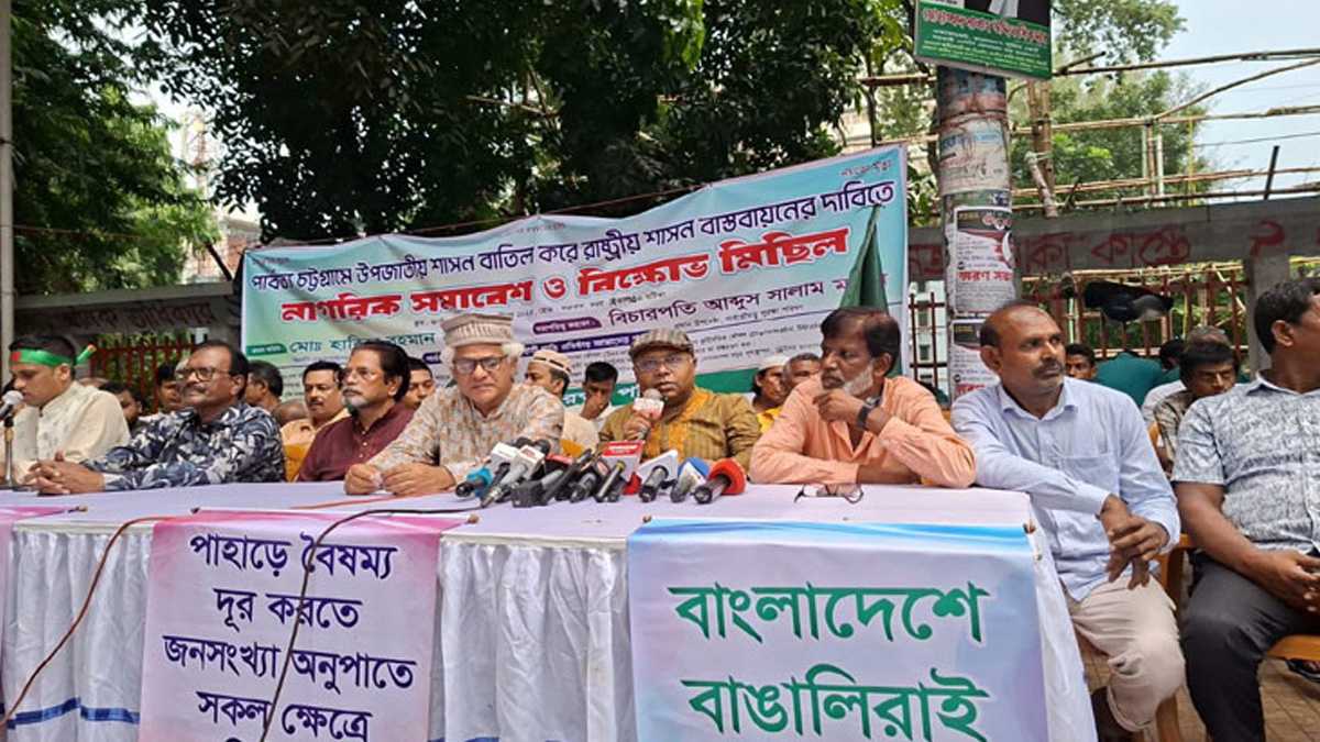 বক্তারা দাবি করেন, পার্বত্য অঞ্চলে বর্তমানে ৬টি সশস্ত্র উগ্র সংগঠন সক্রিয় রয়েছে যারা গুম, খুন, ভূমি দখল ও বাঙালি বিরোধী তৎপরতায় জড়িত। পার্বত্য চট্টগ্রামে কোনো বিচ্ছিন্নতাবাদী রাষ্ট্র গঠনের স্বপ্ন কখনোই সফল হবে না বলেও জানান তারা।