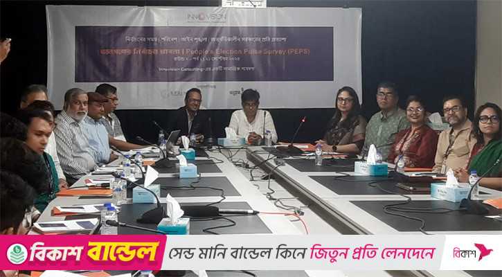 পরামর্শক প্রতিষ্ঠান ইনোভিশন কনসাল্টিং-এর ‘জনগণের নির্বাচন পালস সমীক্ষা, রাউন্ড ২’-এ এমন চিত্র উঠে এসেছে। রোববার (২১ সেপ্টেম্বর) রাজধানীর কারওয়ান বাজারে দ্য ডেইলি স্টার ভবনের আজিমুর রহমান কনফারেন্স হলে জরিপের ফলাফল প্রকাশ করা হয়।