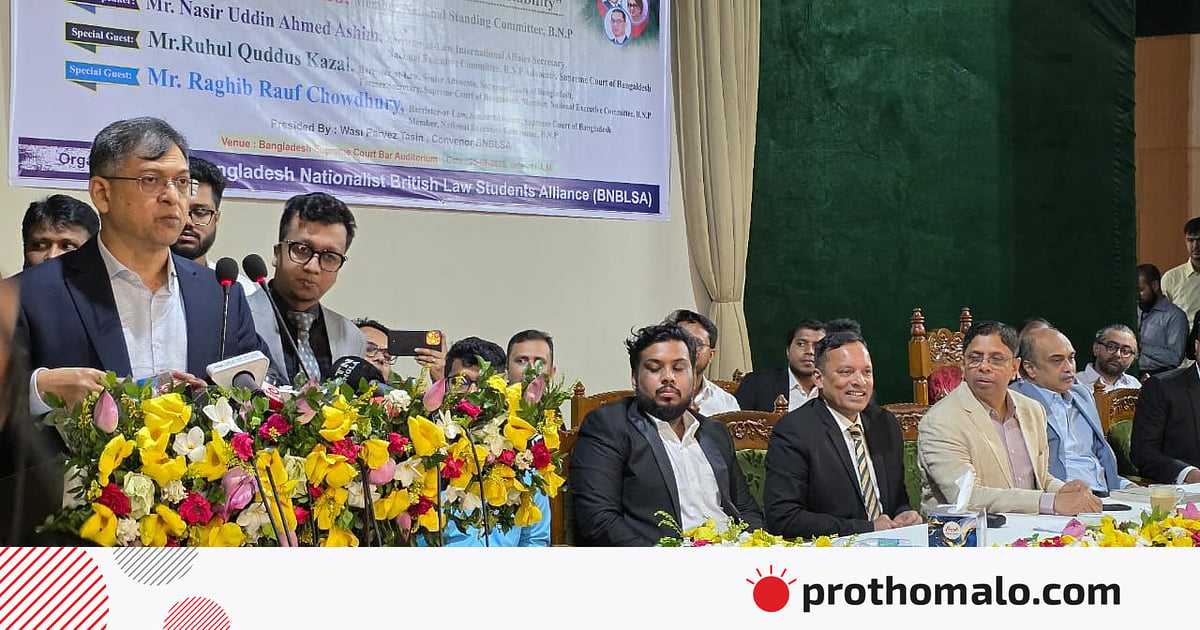 সেমিনারে আরও বক্তব্য দেন বিএনপির আন্তর্জাতিকবিষয়ক সম্পাদক নাসির উদ্দিন আহমেদ অসীম, আইনজীবী রুহুল কুদ্দুস কাজল ও রাগিব রউফ চৌধুরী। সভাপতিত্ব করেন সংগঠনের আহ্বায়ক ওয়াসি পারভেজ তাহসিন।