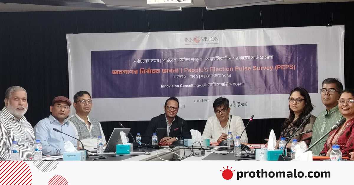 পরামর্শক প্রতিষ্ঠান ইনোভেশন কনসাল্টিং-এর ‘জনগণের নির্বাচন ভাবনা’ নিয়ে দ্বিতীয় দফার প্রথম পর্বের জরিপে এই ফলাফল উঠে এসেছে। আজ রোববার সকালে রাজধানীর ডেইলি স্টার ভবনে জরিপের ফলাফল প্রকাশ করা হয়।