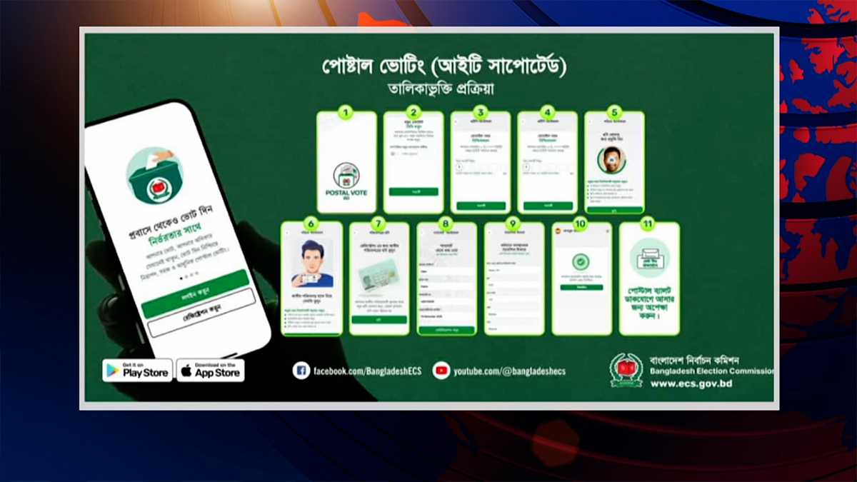 নভেম্বরের মাঝামাঝি ‘পোস্টাল ভোট বিডি’ অ্যাপ নিয়ে আসছে ইসি। জাতীয় পরিচয়পত্রের নম্বর ব্যবহার করে অনলাইনে করতে হবে নিবন্ধন। প্রার্থী চূড়ান্ত হওয়ার আগেই ইসির তালিকায় থাকা প্রতীক এবং ‘না’ ভোট সম্বলিত ব্যালট পেপার ভোটারদের কাছে পাঠানো হবে। এতে থাকবে না প্রার্থীর নাম। চূড়ান্ত প্রার্থী তালিকা ও প্রতীক বরাদ্দ হওয়ার পর তারা ভোট দেবেন।