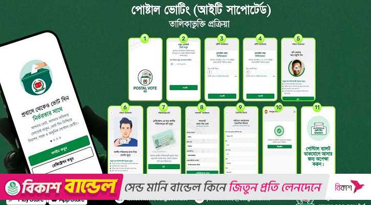 ইসির নির্দেশিকায় বলা হয়েছে, রিটার্নিং কর্মকর্তার পাঠানো খাম পেলে ভোটার তার অ্যাপে প্রবেশ করবেন। এরপর নির্দেশিকা দেখে মোবাইল নম্বর নিশ্চিত করবেন। এরপর নিজের ফটো তুলবেন। পরবর্তীতে খামের ওপর থাকা কিউআর কোড স্ক্যান করলেই ভোটার তার আসনের সকল প্রার্থীর নাম দেখতে পাবেন। আর এটা দেখা যাবে প্রার্থিতা চুড়ান্ত হওয়ার পর। প্রার্থিতা দেখার পর ভোটার তার কাছে পাঠানো খাম খুলে ব্যালট পেপার বের করে ভোট দেবেন এবং একটি ঘোষণাপত্রে স্বাক্ষর করবেন। এরপর ব্যালট পেপার খামে ভরে নিকটস্থ পোস্ট অফিসে জমা দেবেন।