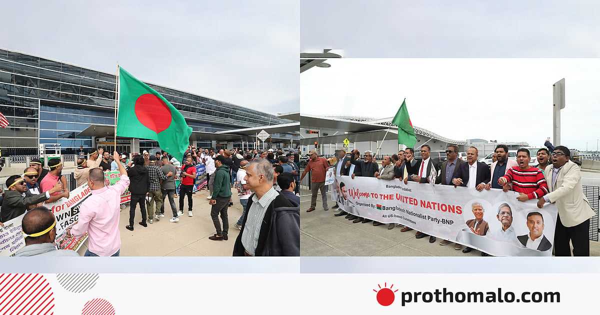 এই টার্মিনালেই বেলা ২টা থেকে বিকেল ৪টা পর্যন্ত কর্মসূচির অনুমতি নিয়েছিলেন বিএনপি সমর্থকেরা। তিন শতাধিক নেতা–কর্মী সেখানে জড়ো হয়ে বিএনপির মহাসচিব মির্জা ফখরুল ইসলাম আলমগীরসহ অন্য অতিথিদের নিউইয়র্কে স্বাগত জানিয়ে স্লোগান দেন। একপর্যায়ে নেতা–কর্মীদের একটি বড় অংশ যে যার মতো করে চলে যান। এর মধ্যে বিমানবন্দরের ৪ নম্বর টার্মিনাল থেকে বের হয়ে আওয়ামী লীগের নেতা–কর্মীদের হেনস্তার মুখে পড়েন প্রধানমন্ত্রীর সফরসঙ্গী হিসেবে যাওয়া এনসিপি নেতা আখতার হোসেন ও তাসনিম জারা।
