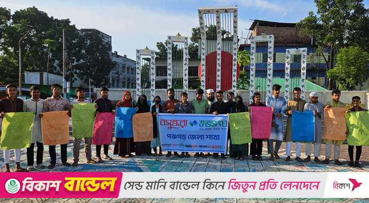 পঞ্চগড়: পরিবেশ ও নদী দূষণ বন্ধের দাবিতে পঞ্চগড়ে মানববন্ধন করেছে বসুন্ধরা শুভসংঘের স্থানীয় সদস্যরা।